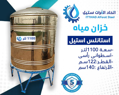 خزان مياه استانلس استيل سعة1100لتر اسطوانى رأسى