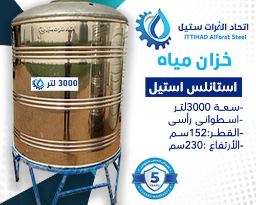 خزان مياه استانلس استيل سعة 3000لتر اسطوانى رأسى