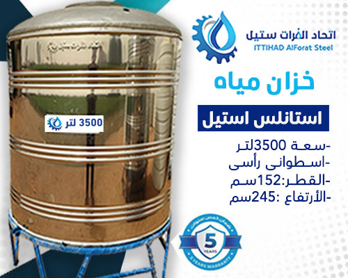 خزان مياه استانلس استيل سعة 3500 لتر اسطوانى رأسى