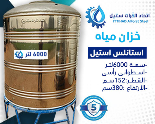 خزان مياه استانلس استيل سعة 6000 لتر اسطوانى رأسى