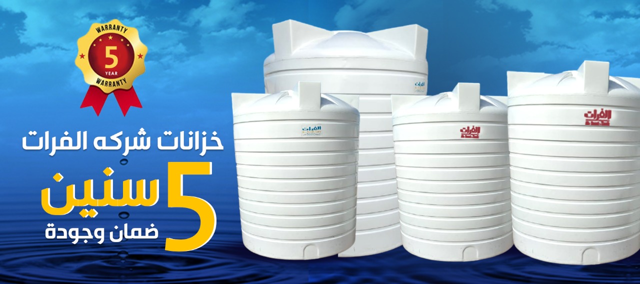 تقدم شركة الفرات ضمان خمس سنوات على خزانات المياة البولى ايثيلين والخزانات الفيبر جلاس وتقدم ضمان ثلاث سنوات على الخزانات الاستانلس ستيل